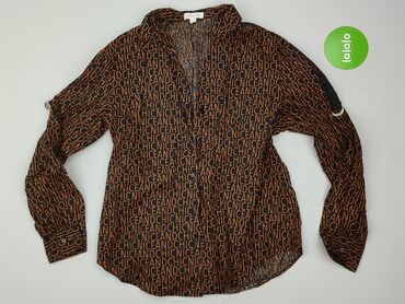Koszula damska IMAGE, rozmiar L - Fason: luźny, zapinana na guziki, długi rękaw, klasyczny kołnierzyk - Wzór: efektowny, abstrakcyjny print w odcieniach czerni i kości słoniowej; dekoracyjne, obci...