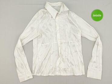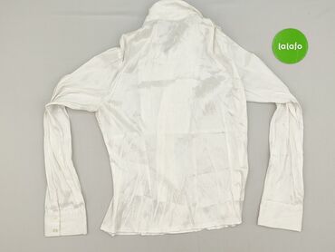 Koszula damska z długim rękawem, biała, 100% bawełna. - Rozmiar z metki: EU 42 / US 12 (CN 170/96A, MX 12) - Fason: przedłużany dół (zaokrąglony), zapięcie na guziki z przodu - Kołnierz: stójka - ...Stan: