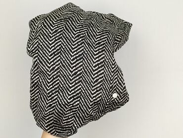 Bluzka damska z krótkim rękawem - Krój: luźny, lekko taliowany, z opuszczonymi ramionami - Dekolt: okrągły - Kolorystyka: przód w drobny czarno‑szary wzór jodełki; tył i lamówki rękawów w gładkiej...