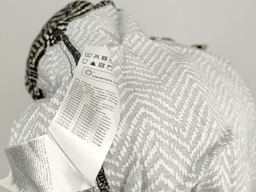 Bluzka damska z długim rękawem, rozmiar 40. - Kolor: biały z szaro‑czarnym, kwiatowym nadrukiem. - Krój: lekko wydłużony tył/zaokrąglony dół, dekolt w serek z listwą i guzikami, kieszonka na pier...