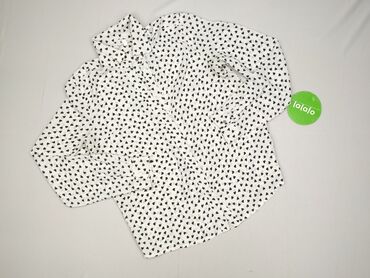 Damska koszula w serduszka, rozmiar 38 - Kolor: biała w czarne, drobne serduszka - Kontrastowe, czarne wykończenia: kołnierzyk, listwa guzikowa i mankiety - Krój: klasyczny, z długim rękawem, lekk...