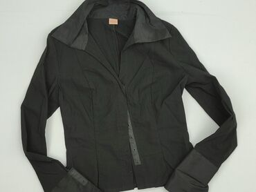 Czarna koszula damska LXA, rozmiar S. - Fason: klasyczna koszula zapinana na guziki - Kołnierzyk: klasyczny - Rękawy: długie, mankiety zapinane na dwa guziki - Dół lekko zaokrąglony - Materiał (me...