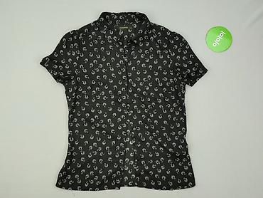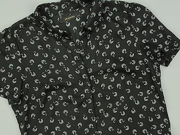 Damska koszula z krótkim rękawem - Kolor: czarny - Wzór: białe papierowe samoloty z przerywanymi liniami lotu - Krój: taliowana, lekko dopasowana - Zapięcie: na guziki z przodu - Kołnierzyk klasycz...Rozmiar: