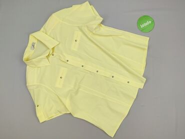 Żółta koszula damska z krótkim rękawem - Fason: luźny, zapinana na guziki z przodu - Kołnierzyk klasyczny, lekko zaokrąglony dół - Krótkie rękawy typu cap - Jedna dekoracyjna kieszonka na piersi z...