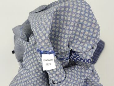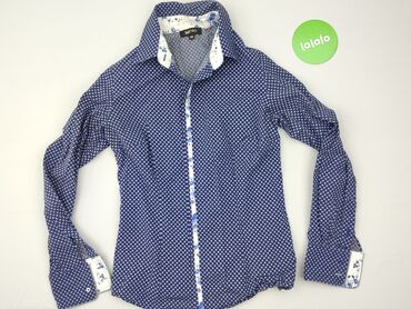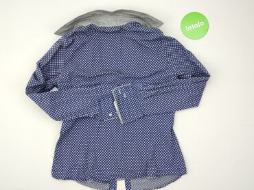 - Kontrastowe detale: wewnątrz kołnierzyka, listwy guzikowej i mankietów biała tkanina w niebieskie kwiaty