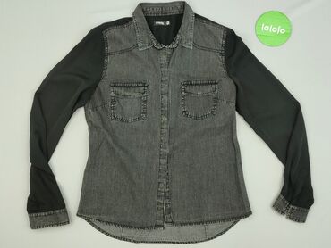 Uniwersalna koszula o charakterze casual/rock, świetna do stylizacji z jeansami lub spódnicą. Marka: Sinsay, rozmiar z metki: M. Kolory: szary denim + czarny.