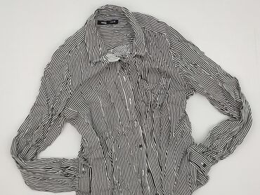 Koszula damska Sinsay BASIC - Rozmiar: M (metka) - Fason: koszula z kołnierzykiem, zapinana na guziki z przodu - Rękawy: długie - Wzór: pionowe pasy w kolorze białym i jasnoniebieskim - Dół lekko ...