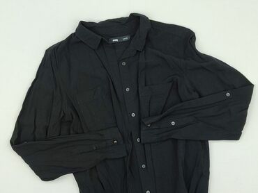 Damska koszula Sinsay, rozmiar L - Kolor: czarny, matowy - Fason: klasyczna koszula z kołnierzykiem, zaokrąglony dół - Zapięcie: częściowo na guziki z przodu (plisa do połowy) - Rękawy długie, man...