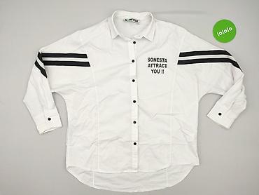 Biała koszula damska Sinsay, rozmiar M. - Fason: zapinana na guziki z przodu, dekolt V - Rękawy długie, zakończone szerokim mankietem na dwa guziki - Dół lekko zaokrąglony - Materiał: 65% bawełna,...