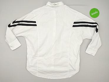 Damska koszula biała z długim rękawem - Klasyczny kołnierzyk, zapięcie na rząd drobnych guzików z przodu - Asymetryczne rozcięcia po bokach - Dekoracyjne, duże metaliczne guziki po bokach oraz na ...
