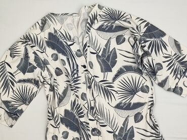 Koszula damska Medicine, rozmiar XS. - Fason: klasyczna koszula zapinana na guziki, długi rękaw z mankietami na guzik, kołnierzyk. - Wzór: intensywny, tropikalny print – liście w odcieniach turkus...