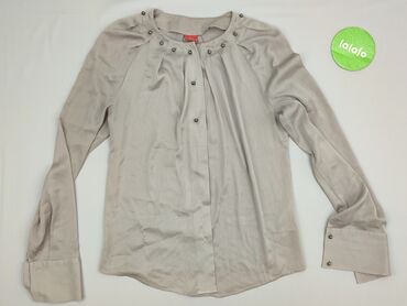 Elegancka koszula damska MARKA, rozmiar 46 - Kolor: srebrzysta/perłowa biel - Wzór: subtelne, tłoczone kółka (żakardowy połysk) - Fason: klasyczny, zapinana na guziki z przodu - Kołnierzyk: klasyc...