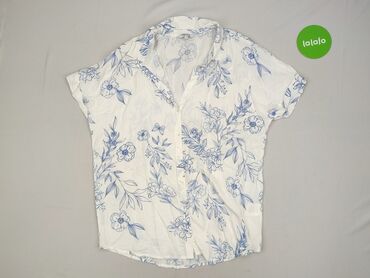 Koszula damska TOM&ROSE, rozmiar L. - Klasyczny kołnierzyk, zapięcie na guziki z przodu - Długie rękawy zapinane na guziki przy mankietach - Zaokrąglony dół - Wzór: granatowe tło w kwiaty (jasnoró...