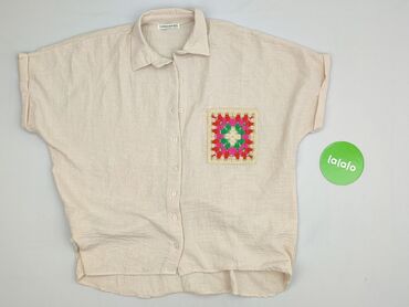 Koszula damska SHEIN - Krój: luźny, prosty, zapinana na rząd białych guzików - Rękaw: krótki - Kołnierzyk: klasyczny - Kolor: beżowy/piaskowy, delikatna struktura tkaniny - Materiał: 100% bawełna ...