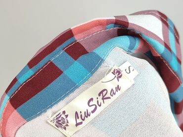 Damska koszula w kratę, rozmiar S - Fason: klasyczna koszula zapinana na guziki - Rękaw: długi, mankiety na guziki - Kołnierzyk: klasyczny - Wzór: drobna krata w odcieniach bieli, granatu i różu -...