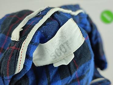 - Wzór: szkocka krata w odcieniach niebieskiego i czerni z cienkimi czerwonymi liniami