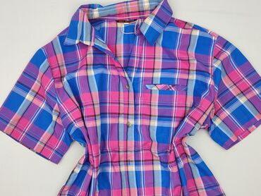 Koszula/tunika damska w kratę - Krój: luźny T-shirt/koszula z krótkim rękawem, długość do bioder - Dekolt: w serek z krótką listwą guzikową (3 guziki) - Kieszeń: pojedyncza kieszonka na piersi zap...