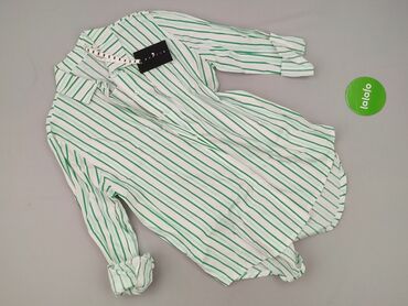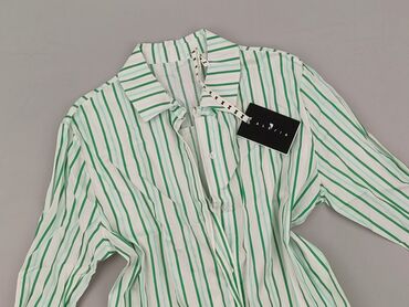 Koszula damska RESERVED - Model: koszula z kołnierzykiem, zapinana na guziki z przodu - Kolor/wzór: biało‑zielone, wąskie paski - Rękawy: długie, mankiety zapinane na guziki - Kołnierz klasyczny -...