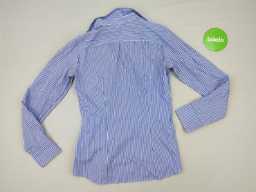Koszula damska H&M w paski - Model: koszula z kołnierzykiem, zapinana na guziki, długi rękaw z mankietami na guziki - Wzór/kolor: białe i kobaltowe pionowe paski - Rozmiar: EUR 34 (US 4, CA 4, CN ...
