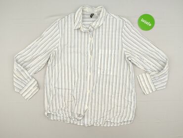 Koszula damska w paski - Klasyczna, biała koszula w cienkie, czarne pionowe paski - Fason luźny, wydłużony tył (zaokrąglony dół) - Kołnierzyk z klapami, częściowo rozpinana na guziki (plisa z przo...