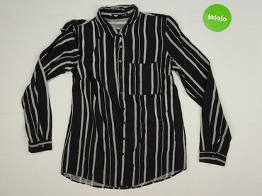 Koszula damska Sinsay, rozmiar M - Klasyczny krój z kołnierzykiem i zapięciem na guziki - Długi rękaw z mankietami zapinanymi na guziki - Wzór: czarne tło w wąskie białe pionowe paski - Jedna kies...