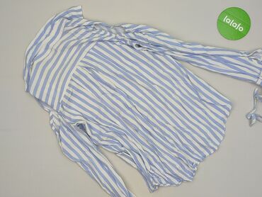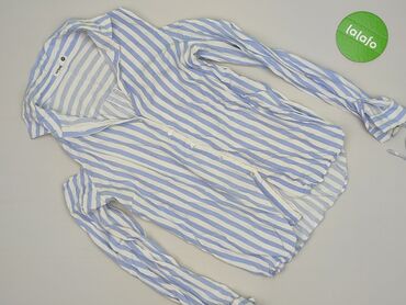 Koszula damska Sinsay, r. S - Fason: klasyczna koszula zapinana na guziki - Rękaw: długi, mankiety na guziki - Kołnierz: stójka - Wzór: pionowe paski w kolorze kobaltowym i białym - Długość: lekko...