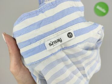 Koszula damska Sinsay, rozmiar M. - Klasyczny kołnierzyk, zapięcie na guziki na całej długości - Długie rękawy z mankietami zapinanymi na guziki - Wzór: czarno‑białe, wąskie paski (pionowe) - Deli...