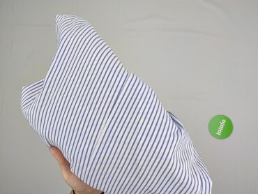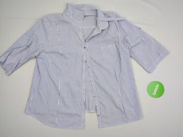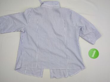 Koszula damska w paski - Krój: klasyczna koszula zapinana na guziki z kołnierzykiem, długie rękawy z mankietami na guziki - Wzór: drobne pionowe paski w kolorze błękitno-białym - Rozmiar z metki: ...