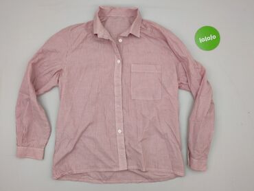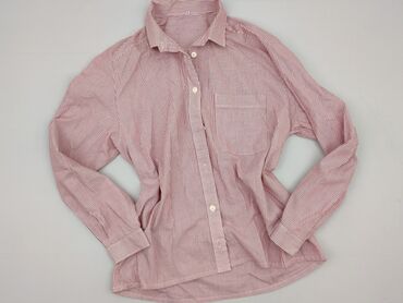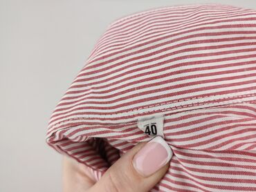 Koszula damska w paski - Krój: luźny, z opuszczoną linią ramion; tył nieco dłuższy niż przód (zaokrąglony dół) - Wzór: wąskie, pionowe paski w kolorze niebieskim i białym - Zapięcie: półplisa na g...