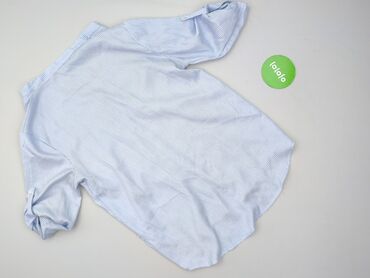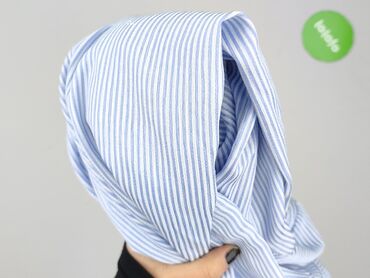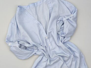 Damska bluzka My Blue - Kolor: jasny błękit w drobne, pionowe paseczki - Fason: luźny, lekko wydłużony tył - Dekolt: okrągły z małym pęknięciem w kształcie V - Rękawy: długie, mankiety zapinane na...Stan: