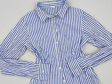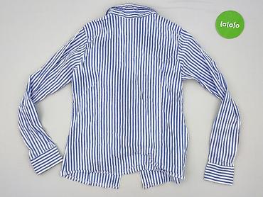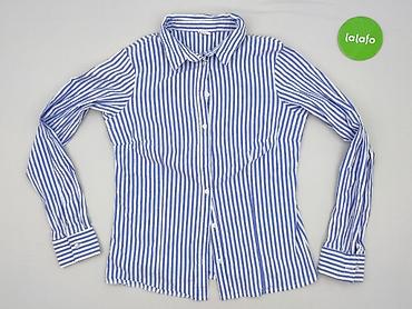 Koszula damska w paski - Krój: klasyczna koszula zapinana na guziki z kołnierzykiem, długie rękawy z mankietami na guziki - Wzór: drobne pionowe paski w kolorze błękitno-białym - Rozmiar z metki: ...