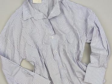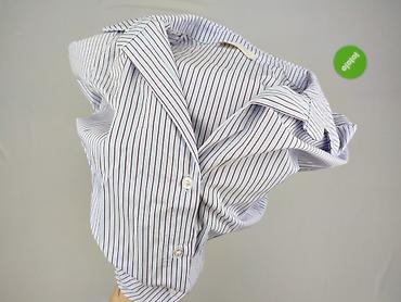 Koszula damska w paski - Krój: klasyczna koszula zapinana na guziki z kołnierzykiem, długie rękawy z mankietami na guziki - Wzór: drobne pionowe paski w kolorze błękitno-białym - Rozmiar z metki: ...