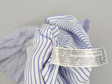 Damska koszula w paski, oversize - Krój: luźny, lekko dłuższy tył (zaokrąglony dół), obniżona linia ramion - Dekolt: w kształcie litery V z krótką stójką - Rękawy: długie, mankiety zapinane - Tył:...