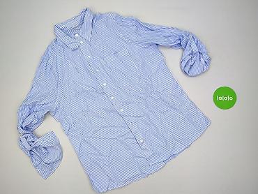 Koszula damska Lustrin, rozmiar M - Wzór: granatowo-białe paski (pionowe i ukośne), efekt lekkiego marszczenia/crinkle - Fason: dłuższa koszula zapinana na guziki, zaokrąglony dół, długi rękaw z m...