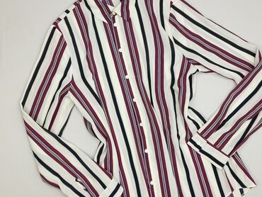 PRIMARK – damska koszula w paski - Model: klasyczna koszula z kołnierzykiem i zapięciem na guziki - Wzór: pionowe paski w kolorach bieli, bordo, czerni i zieleni - Rękawy: długie, mankiety zapinan...