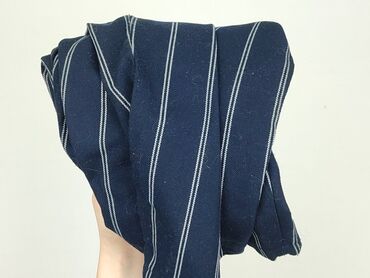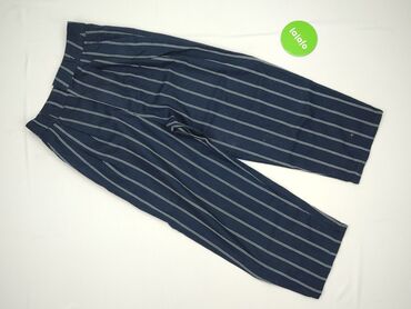 Spodnie damskie Pull&Bear - Rozmiar: EU S (MEX 26) - Kolor: granatowe w pionowe pasy – białe i czerwone - Krój: zwężane nogawki, wysoki stan z marszczoną talią - Pasek: materiałowy, wiązany, w tym...