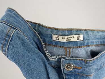 Dżinsy damskie marki Pull&Bear w jasnoniebieskim kolorze z efektem spranego dżinsu. Posiadają klasyczny krój, zapięcie na zamek i guzik, szlufki na pasek oraz pięć kieszeni: dwie z przodu, małą kie...