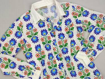 Koszula damska z długim rękawem, wykonana w 100% z wiskozy, co zapewnia lekkość i komfort noszenia. Charakteryzuje się wzorem w kwiaty w odcieniach niebieskiego, fioletu i zieleni na białym tle. Po...