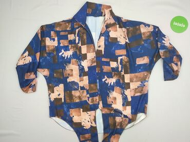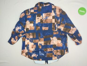 Koszula damska w rozmiarze XL, ozdobiona wzorem składającym się z kwadratów i linii, zapinana na guziki. Posiada klasyczny kołnierzyk i długie rękawy, co sprawia, że jest uniwersalnym elementem gar...