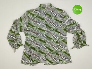 Koszula damska z długim rękawem, rozmiar L. - Krój: klasyczny z kołnierzykiem, zapinana na guziki z przodu. - Wzór: geometryczny/etno, wielokolorowy (odcienie niebieskiego, zieleni, szarości, róż...