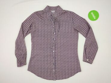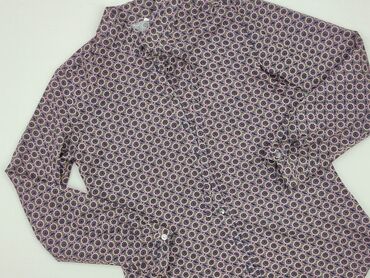 Koszula damska w rozmiarze XL, ozdobiona wzorem składającym się z kwadratów i linii, zapinana na guziki. Posiada klasyczny kołnierzyk i długie rękawy, co sprawia, że jest uniwersalnym elementem gar...