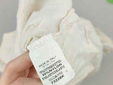 Damska koszula w paski, krótki rękaw - Krój: koszula zapinana na guziki z kołnierzykiem, lekko rozszerzany dół, krótkie rękawy. - Wzór/kolor: pionowe paski w odcieniach beżu i bieli z delikatnymi,...Stan: