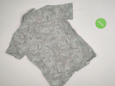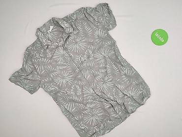 Damska koszula z krótkim rękawem, zapinana na guziki. - Kolor/print: drobny, melanżowy wzór w odcieniach szarości z dekoracyjnym, czarnym motywem roślinnym u dołu przodu. - Krój: prosty, swobodny...