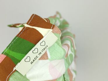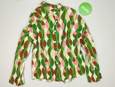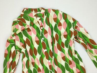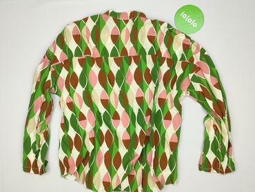 Długi rękawKoszula damska z długim rękawem, zapinana na guziki. Wykonana z lekkiej, cienkiej tkaniny. Wyrazisty, geometryczny wzór w liście/łezki w kolorach zielonym, różowym, brązowym i ecru. Klasyczny kołnierzyk, mankiety zapinane na guziki. Zaokrąglony dół. Metka „Made in Italy”.
