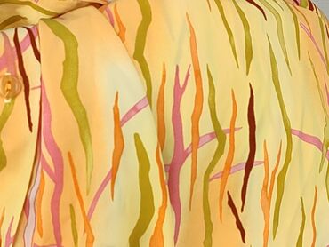 Koszula damska z krótkim rękawem - Wzór: kolorowy, malarski print w motywy kwiatowe; odcienie musztardowego, różu, niebieskiego, czerni i bieli - Krój: zapinana na guziki z przodu, klasyczny kołni...