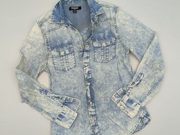 Koszula jeansowa damska Piazza Italia - Rozmiar: S (na metce) - Fason: slim/wycinany w talii - Długość rękawa: długi - Zapięcie: napy/drukowane guziki na całej długości - Kolor: niebieski denim z ...