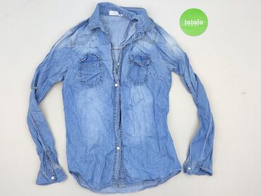 Koszula damska jeansowa Sinsay - Kolor: jasny denim (błękitny, lekko sprany efekt) - Rozmiar z metki: M - Fason: klasyczna koszula jeansowa, lekko taliowana - Zapięcie: napy/drukowane zatrzaski z ...