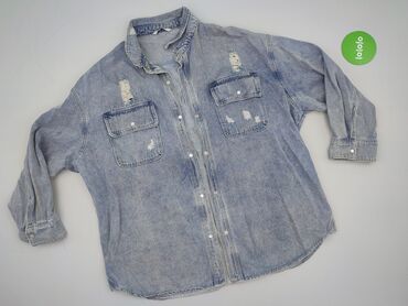 Damska koszula Coolcat z długim rękawem, wykonana z denimu w stylu acid wash. Koszula zapinana na guziki, posiada kołnierzyk i dwie kieszenie na piersiach z ozdobnymi przeszyciami. Rozmiar M. Stan ...Stan: