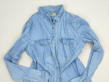 Koszula jeansowa Sinsay – damska - Klasyczny, niebieski denim - Długi rękaw z mankietami na napy - Zapięcie z przodu na metalowe napy - Dwie kieszenie na piersi z klapami zapinanymi na napy - Kołn...