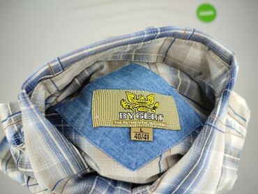 Koszula męska BYGERT Jeans KCT - Rozmiar z metki: L (41/42) - Krój: klasyczny, zapinana na guziki - Wzór: krata w odcieniach beżu z niebieskimi i białymi pasami - Materiał: lekka, przewiewna tkani...